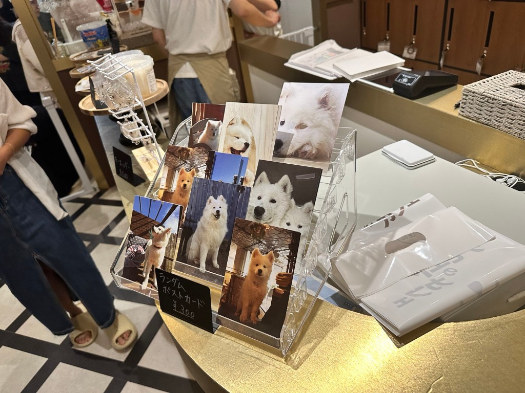 受付付近には、サモエドちゃん達のグッズやアクセサリーが販売されていて、なんとなく手が伸びそうになってしまいました、、