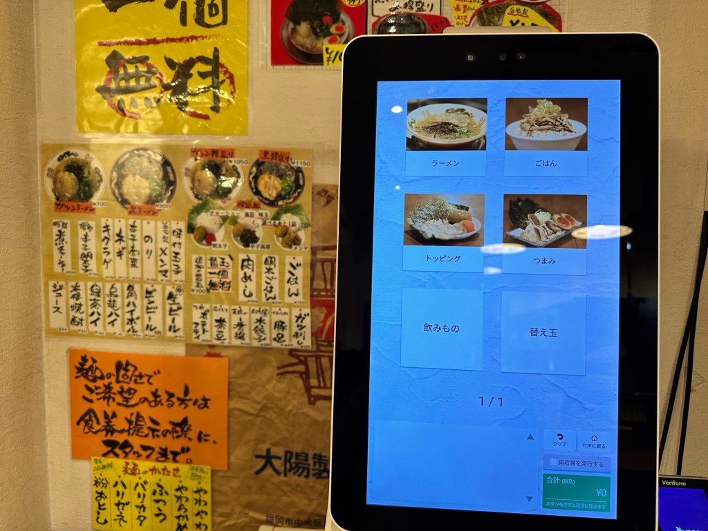 入店してすぐに券売機。現金だけでなく、電子マネーや、PayPayのQRコードでも支払いが可能!