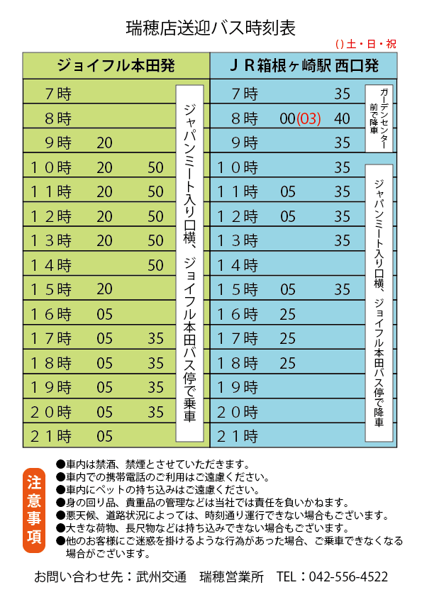 JR「箱根ヶ崎」駅 西口よりシャトルバスあり
