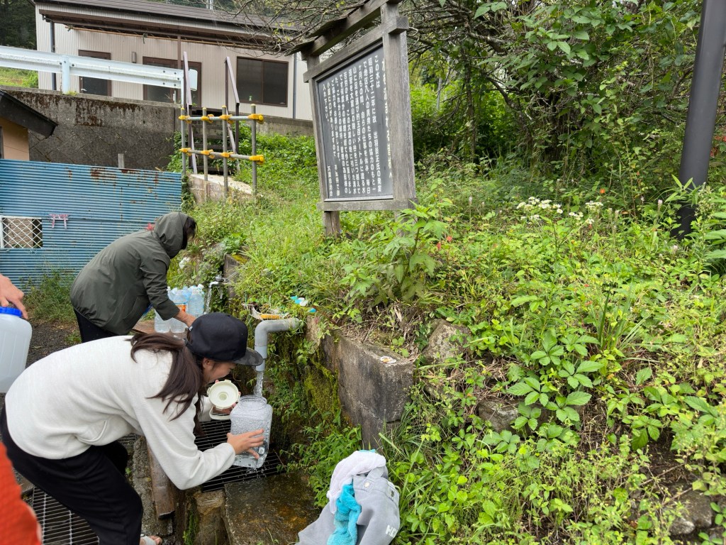 大好きな妹が湧き水を汲んでいるところ(笑)