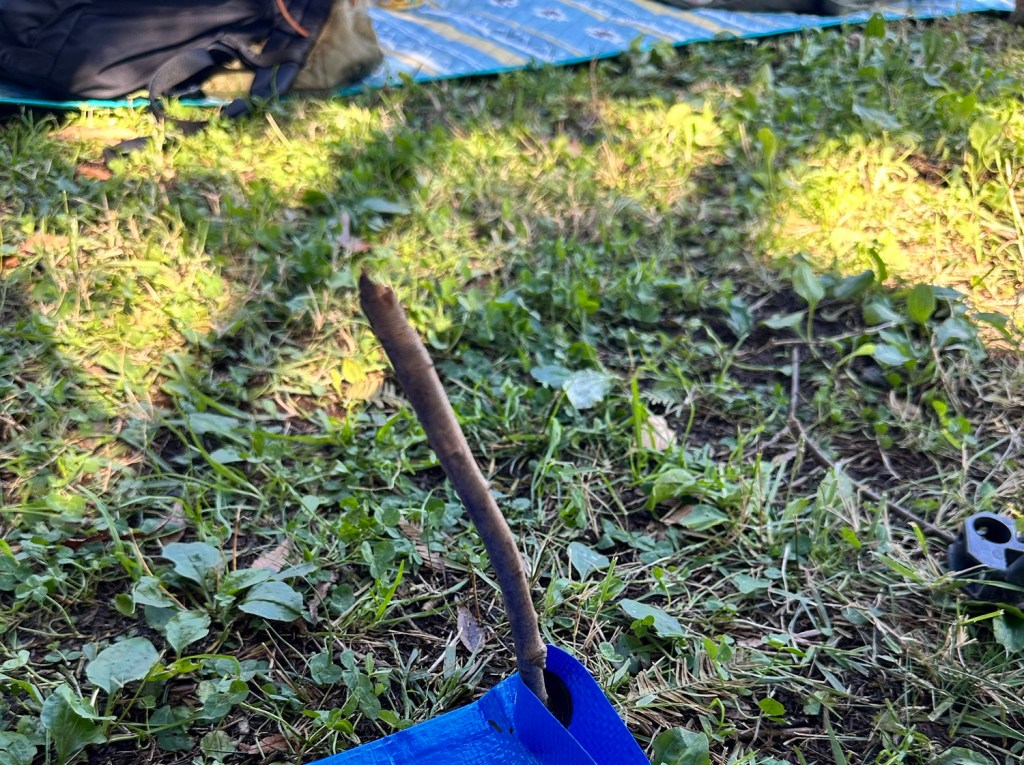 風が強すぎてどうしようかな、、あ!木の枝を引っ掛けておこう!これでずっと過ごしました😌