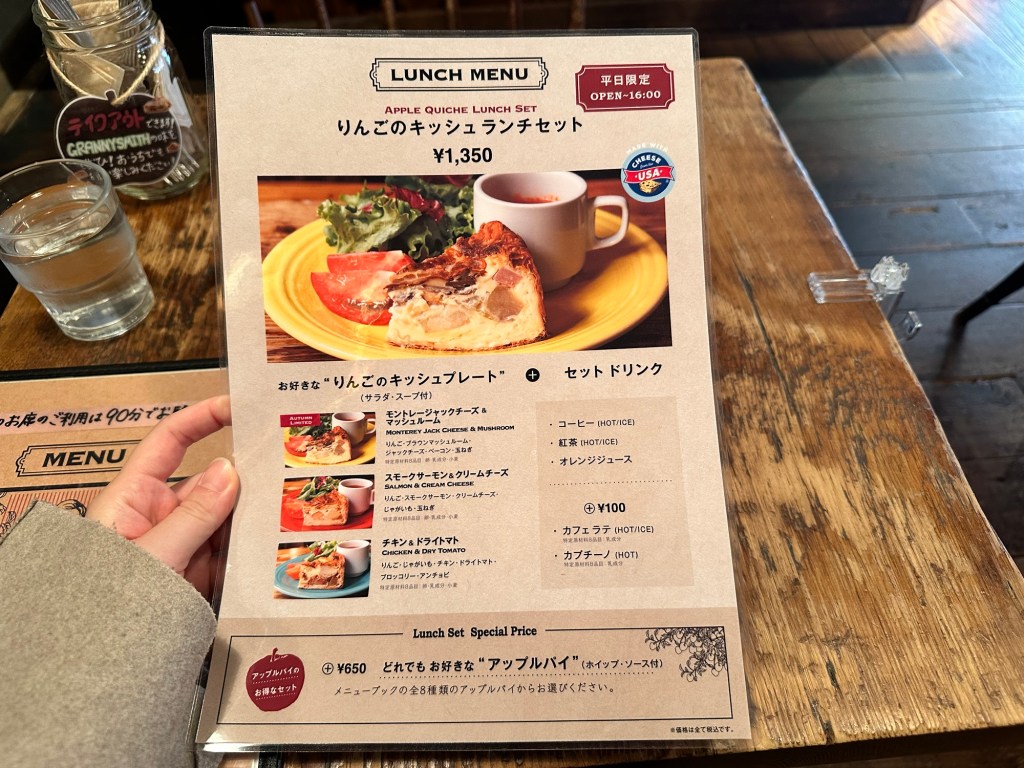 りんごのキッシュプレート(モントレージャックチーズ&マッシュルーム)に決定。