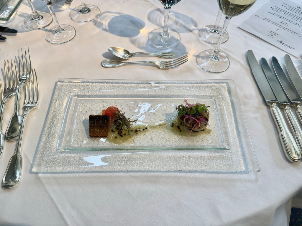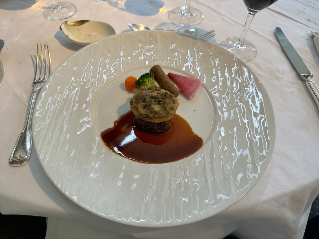 正式名称は「源泉牛フィレ肉とキャビア・ド・オーベルジーヌのヴィエノワーズ デミグラスソース」です(笑)
