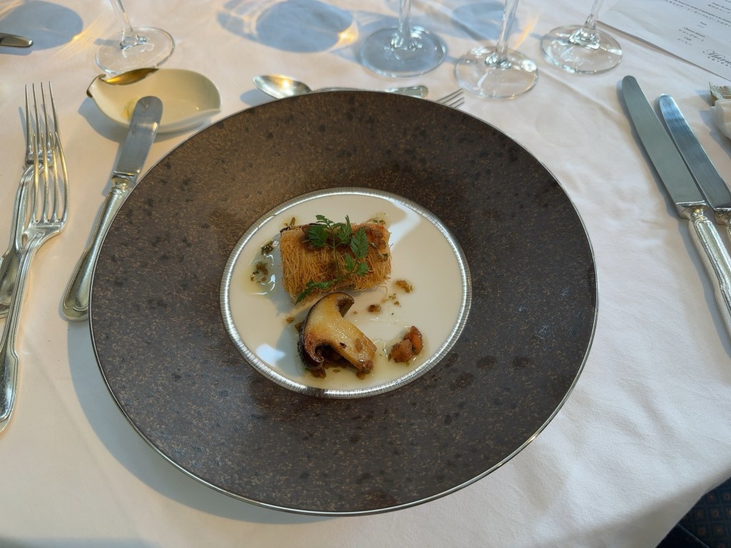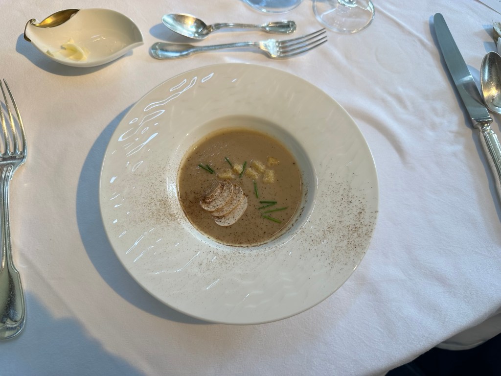 スープは季節などで変わるそうで、今回は4種のキノコのスープ。キノコも大好物で、美味しくペロリでした。