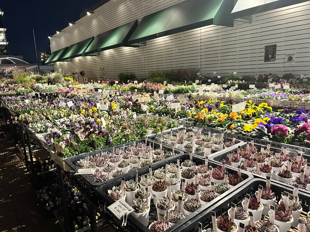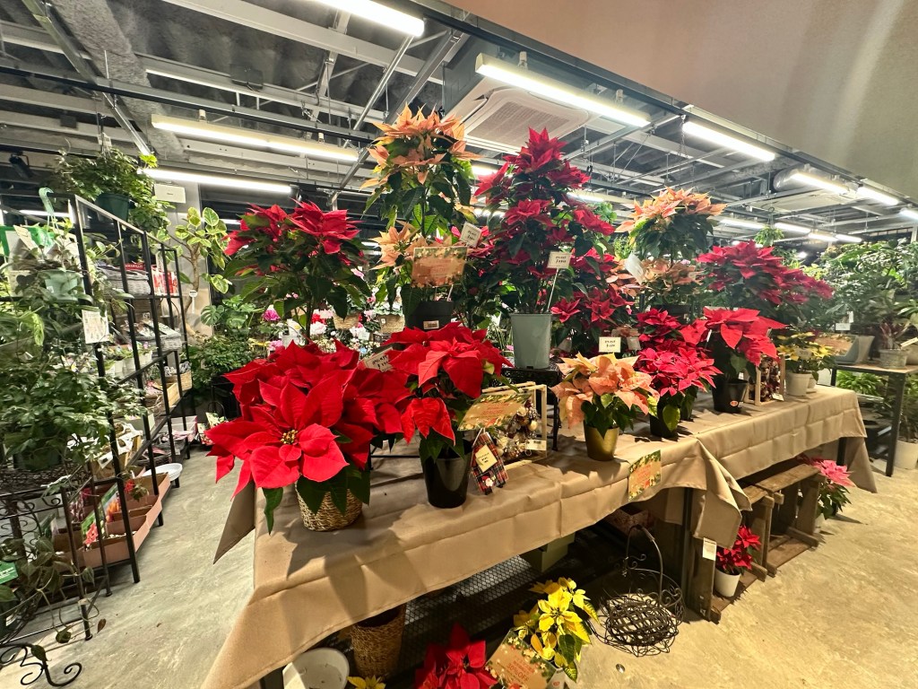 エレベーターを出るとすぐ、季節もののコーナーにはポインセチアがズラリ。