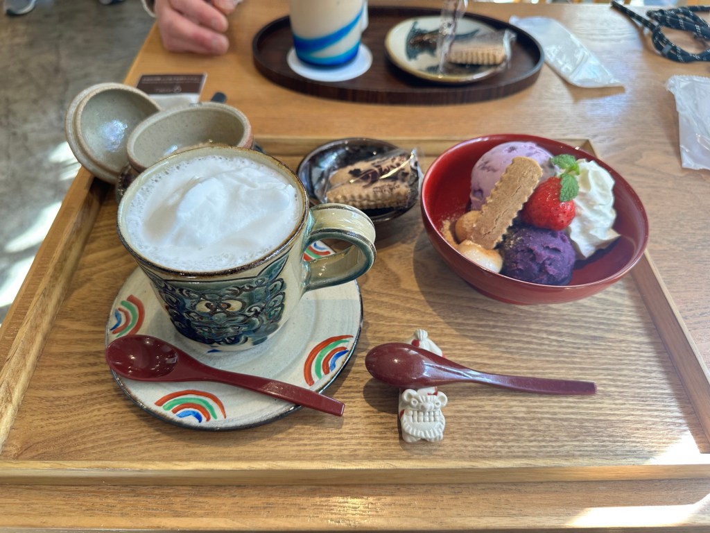 コチラのぶくぶくさんでは、ギャラリーもあるほか、沖縄素材を活かしたぜんざいやドリンクをこだわりの器で提供されています!