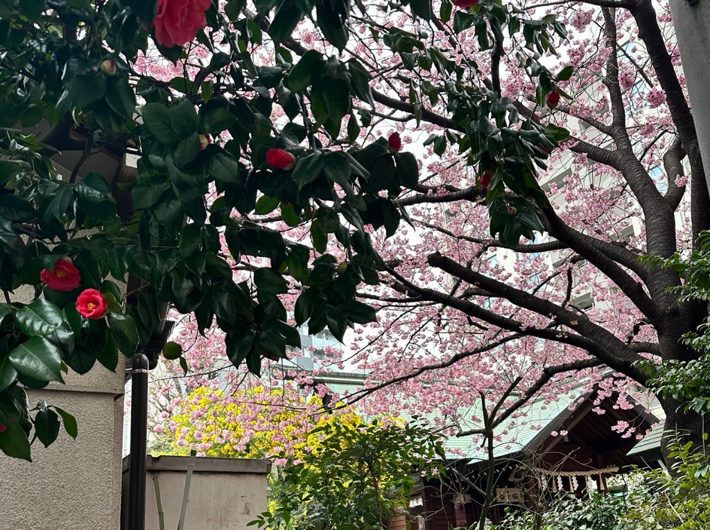 私が見つけた、桜、ミモザ、椿の3種の花が見られる場所です!春は好きだ~